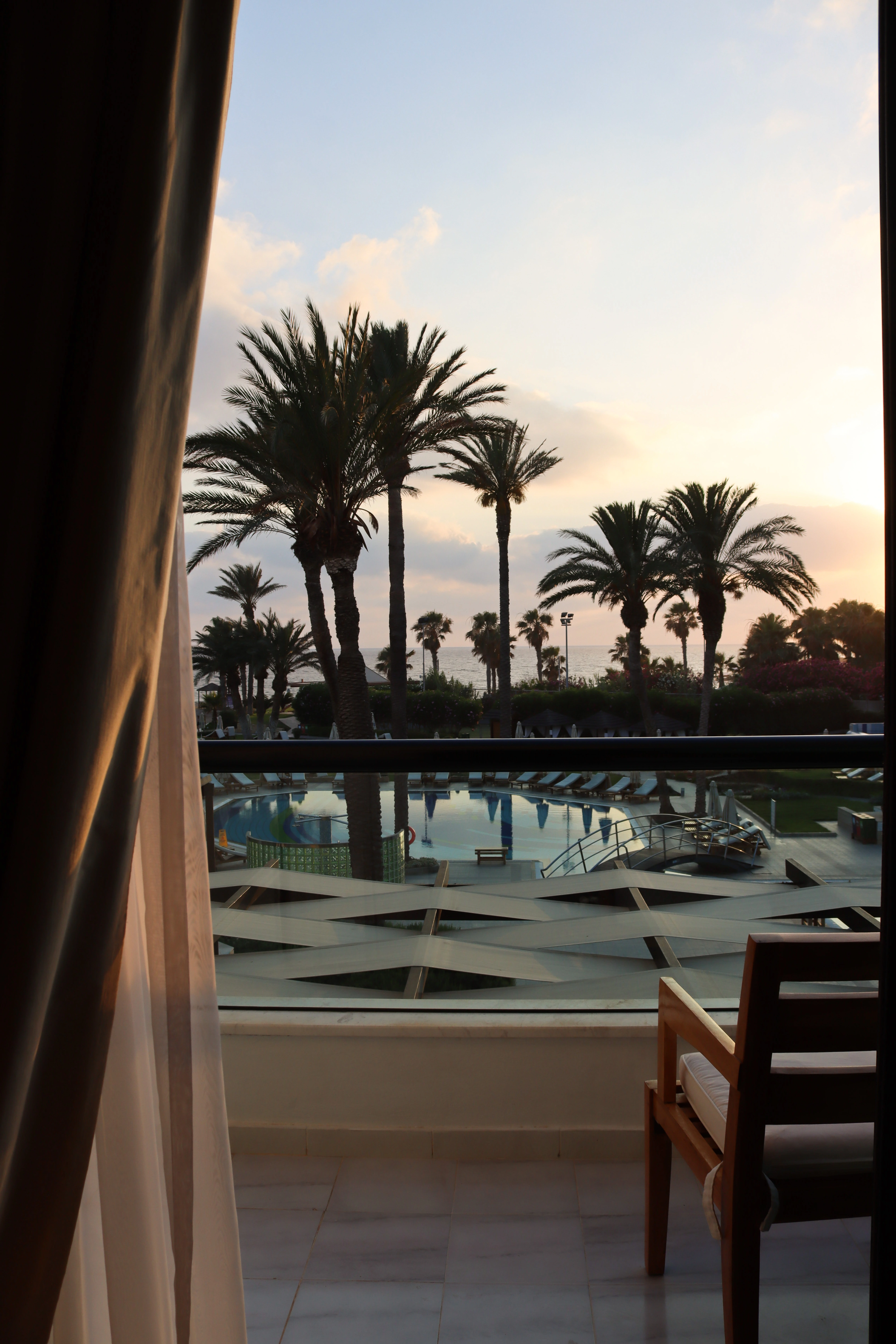 Before exploring the hotel, we had a moment on the balcony looking out to the palm trees swaying in the warm air and took in views of the sea, we knew immediately we were going to have an absolutely incredible time here in Cyprus.